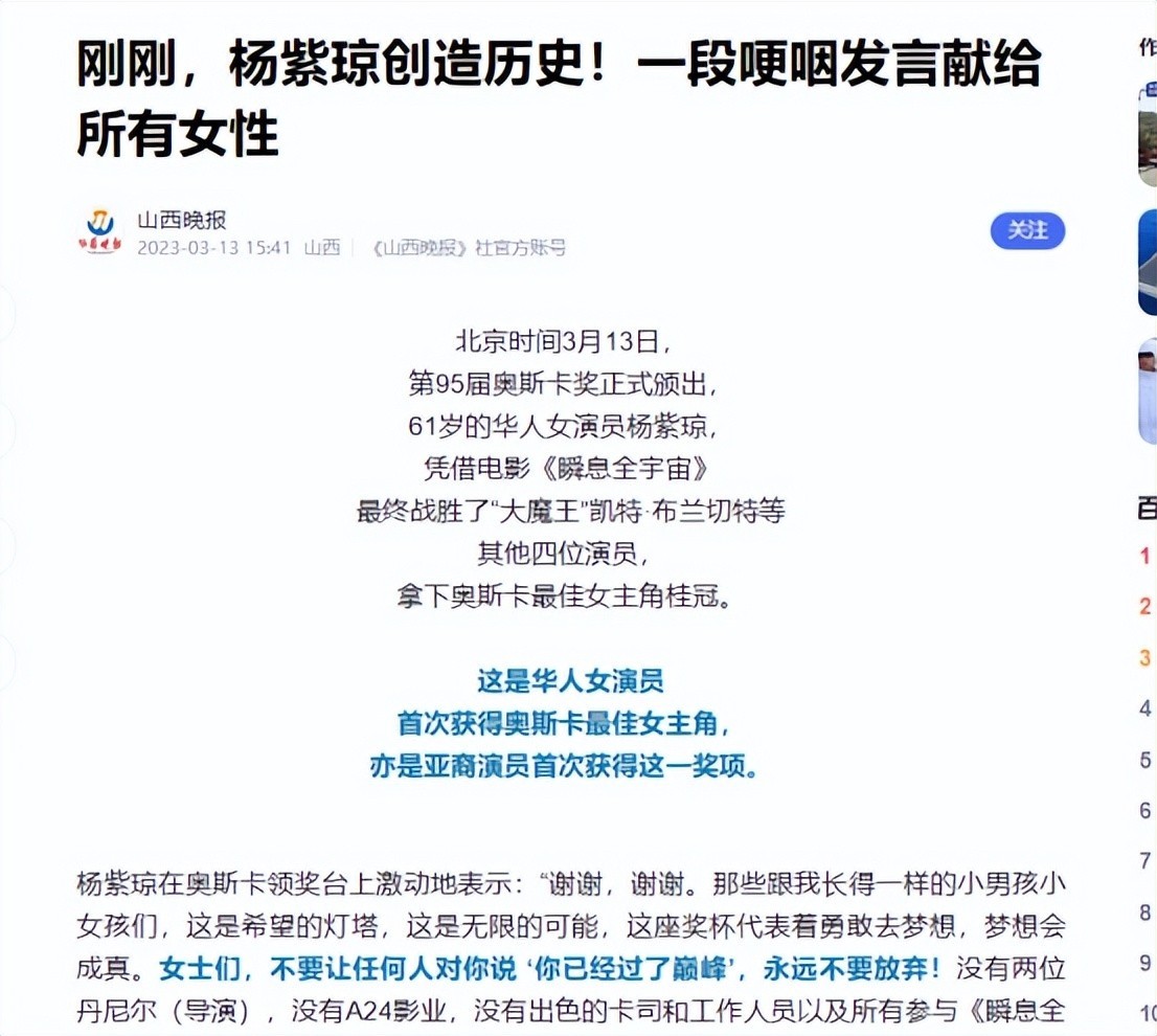 还记得杨紫琼在奥斯卡领奖台上说过的那句话吗?
