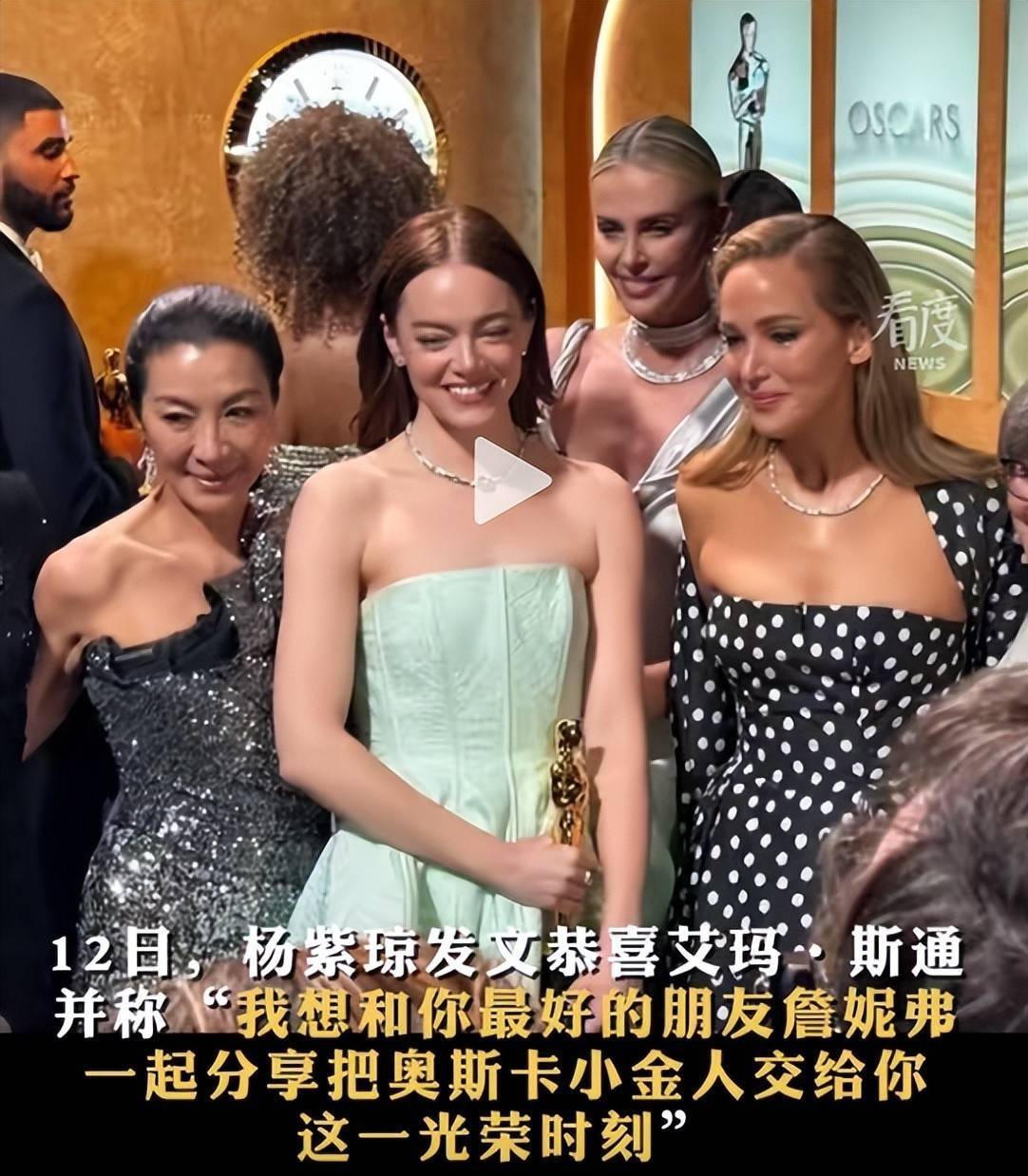 对此,杨紫琼并未回应负面情绪,反而在社交平台分享两人后台拥抱合影,并留言表示:“我知道艾玛与詹妮弗关系亲密,我很荣幸能与这位好朋友共享这份喜悦。”举重若轻化解风波。